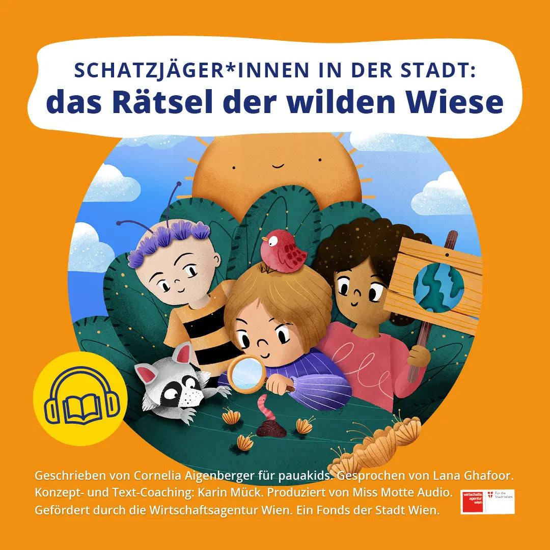Vier Kinder liegen am Boden, auf Brust, Kopf voran und lachen